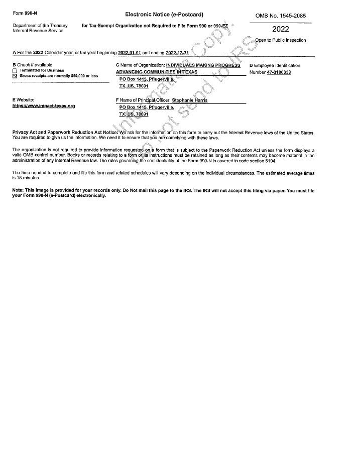 To enhance transparency our corporation will post on our website an electronic copy of the documents required for public view by the Internal Revenue Service (IRS).